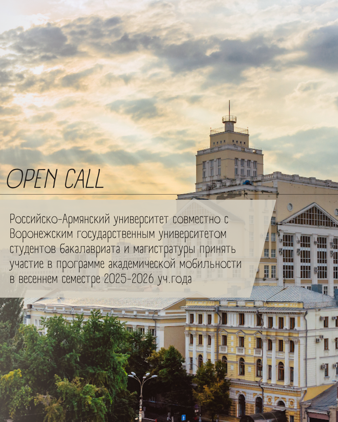 Российско-Армянский университет совместно с Воронежским государственным университетом приглашает студентов принять участие в программе мобильности
